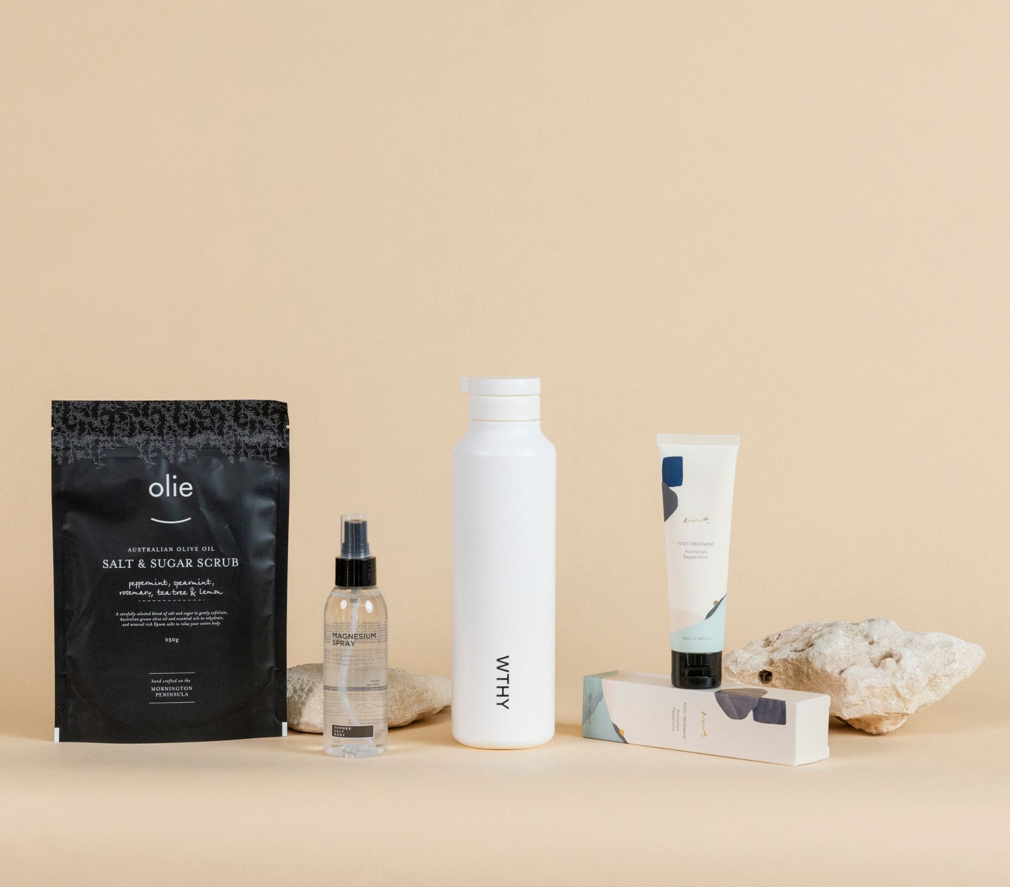 Designed to revive the body and support everyday wellbeing, this gift brings together a considered selection of natural body care, including a magnesium spray to support muscle recovery and relaxation. Paired with gentle exfoliation and soothing foot care, it encourages movement, hydration and balance throughout the day.