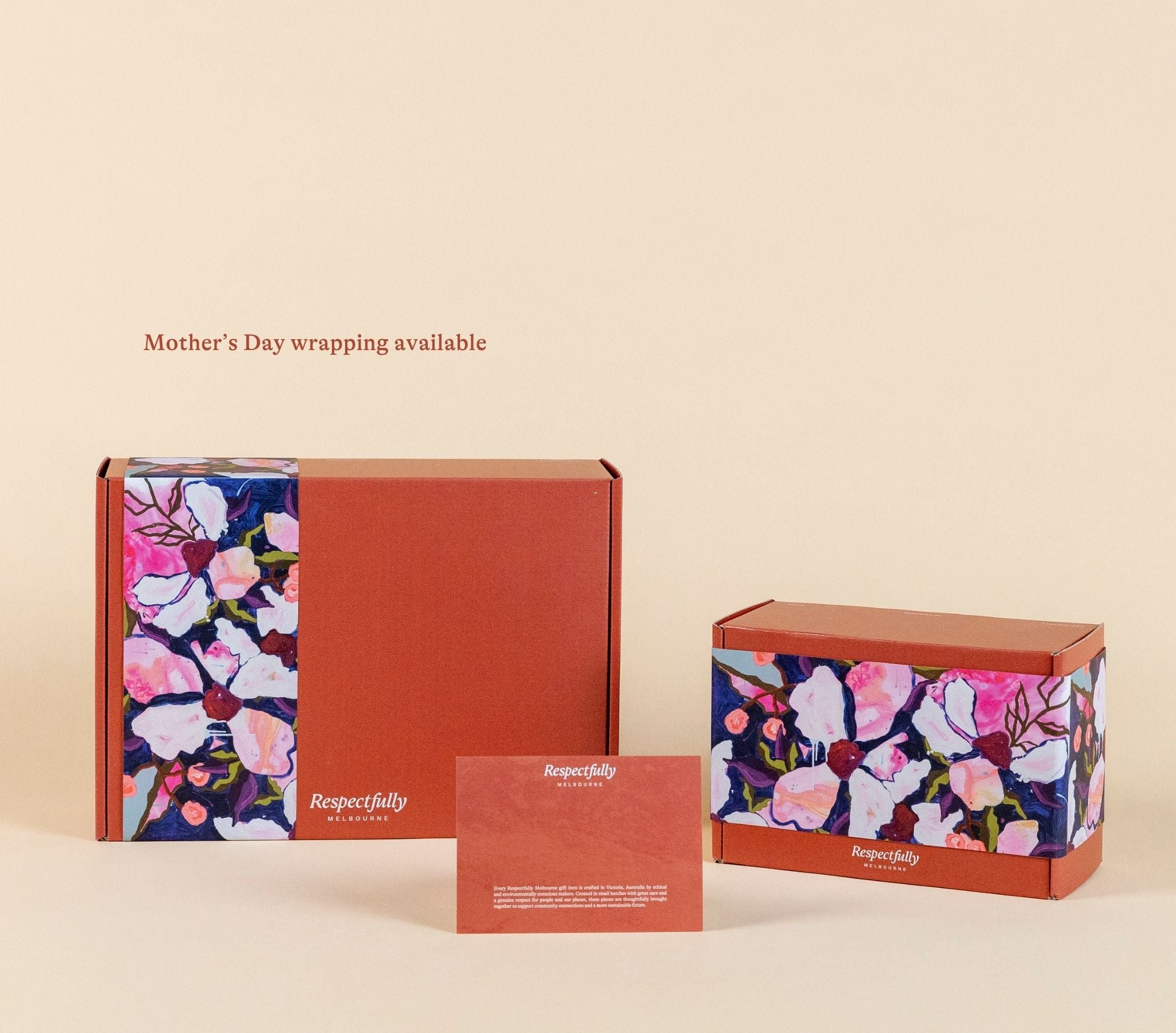 Every Respectfully Melbourne gift arrives beautifully presented in our custom gift box, with your message handwritten on a complimentary gift card. Our packaging is made from recycled or plant-based materials and is fully recyclable or compostable.