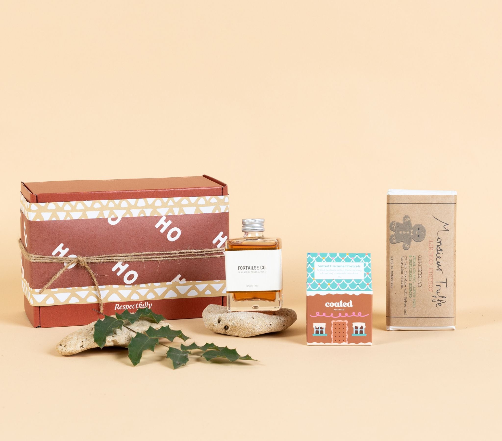 The perfect gift to help them unwind and indulge. Featuring a choice of handcrafted cocktail from Foxtails & Co, paired with salted chocolate pretzels and a limited-edition gingerbread chocolate bar. Thoughtfully made in Victoria, this elegant mix of sweet, salty, and spirited flavours offers a delicious way to relax and celebrate the season.